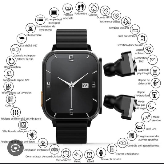SMART WATCH WITH PODS - BLACK CASE WITH PODS