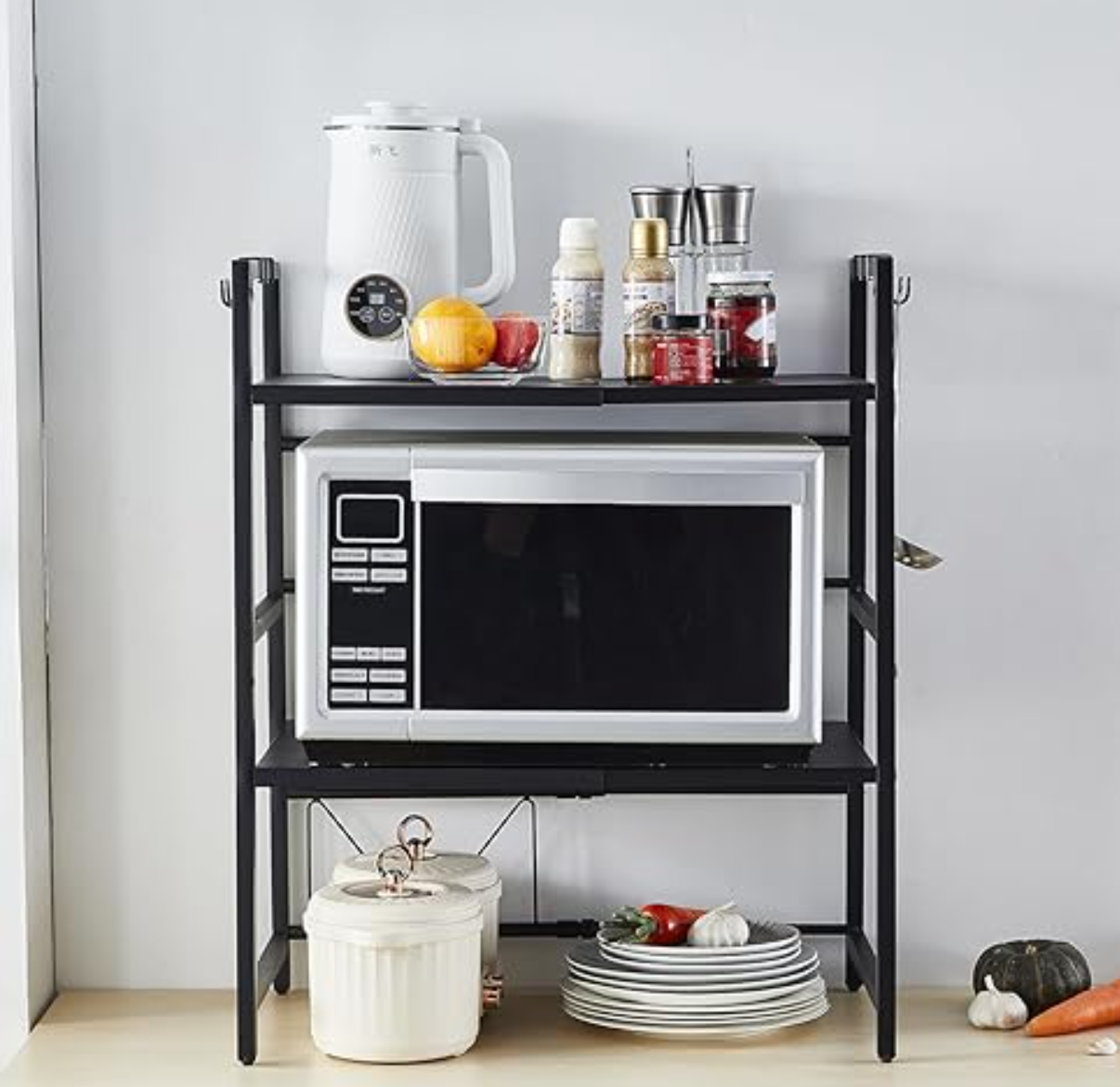 - 【3-Tier Countertop Standing Shelf】3 tiers design shelf, offers you more storage space to organize your items, adjustable length from 39 to 66cm, 36cm depth, enough space for most of the microwave oven style