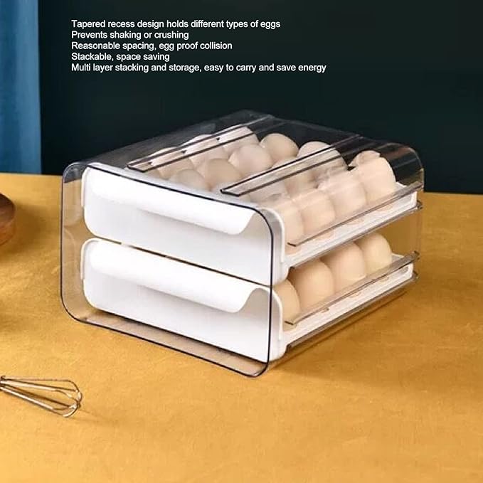 32 Grid Egg Container, Double Layer Transparent Egg Drawer Stackable Egg Holder Refrigerator Egg Tray Egg Storage for Refrigerator
