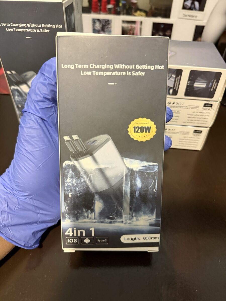 Output - 120W Telescopic charging cable 180 degrees freely adjusting direction Can charger four mobile phones at the same time. Type C output supports super fast charging (max 100W)