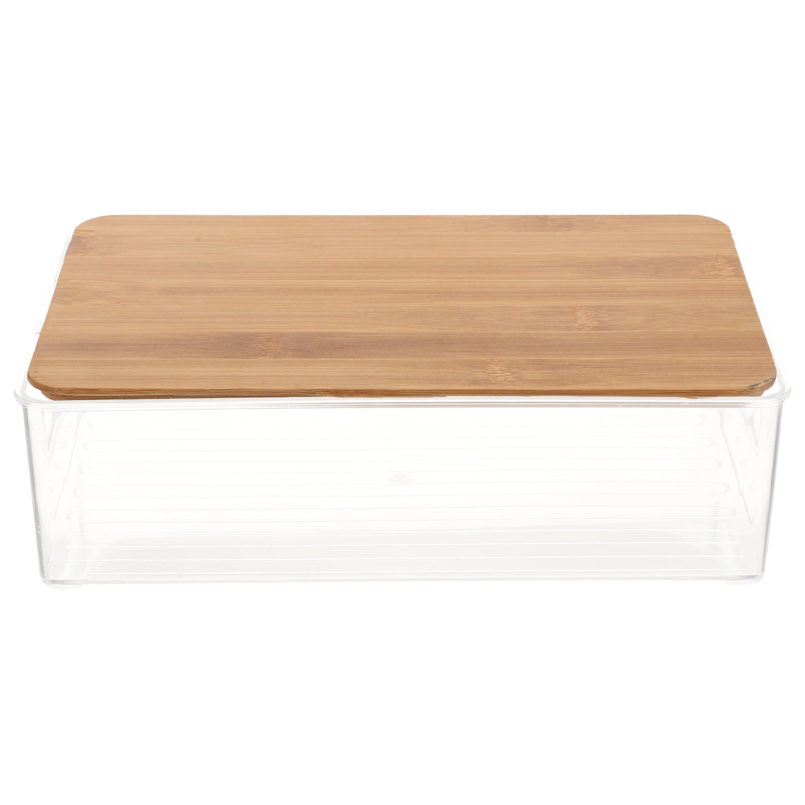 CLEAR PLASTIC STORAGE BOX WITH BAMBO LID SMALL