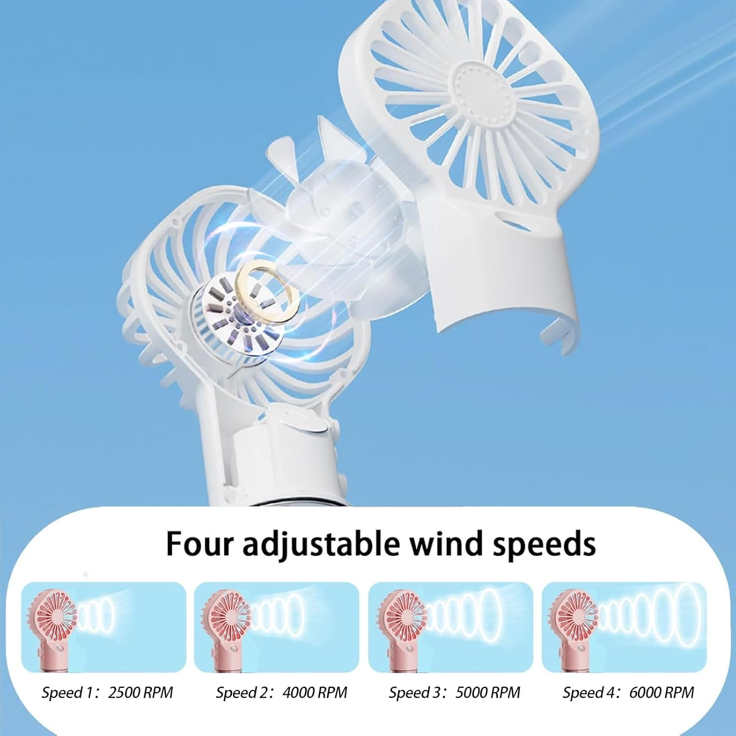 Rechargeable Battery: Equipped with a long-lasting rechargeable battery, the fan ensures continuous cooling wherever you are without the need for disposable batteries.