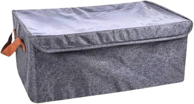 Foldable Fabric Storage Box with Clear Lid & Handles (Grey)