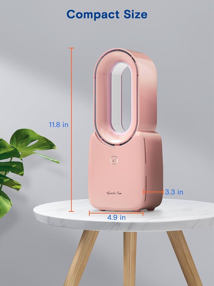 - Bladeless Desk Fan This desk fan is safe for babies, kids and pets since the bladeless design, Innovative bladeless, safe air inlet grille, reference fluid dynamic that increases air volume while blowing out soft air, Large-slope turbine silent air duct, after inhaling air, generates powerful wind through turbocharging, place it in your bedroom and office, creates a quiet, cool environment for you