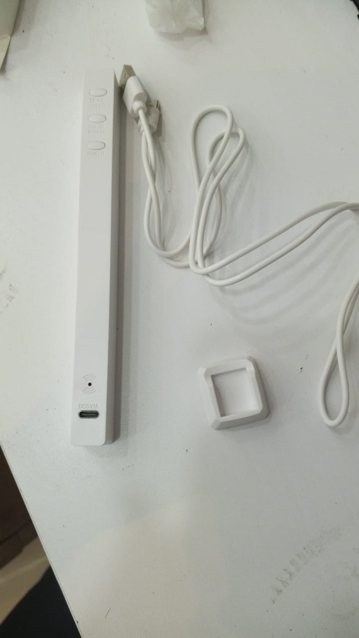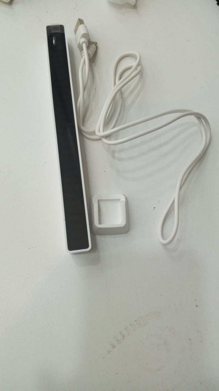 The whole display screen is covered by a layer of protective film. What you see are scratches on the film. Please Please Please remove the whole layer of protective film before using the music level light bar. Hope you enjoy your magic moment with RBG audio spectrum indicator.