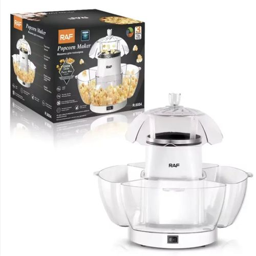 1200 W hot air popping — pops corn quickly using hot air instead of oil.