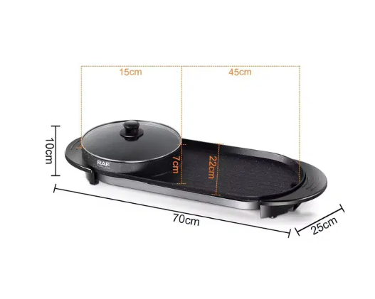 RAF R 5413 Electric Grilled 2 in 1 Hot Pot BBQ Grill Electric Multifunctional Home Smokeless Hot Pot Baking Tray Double Pot Design
