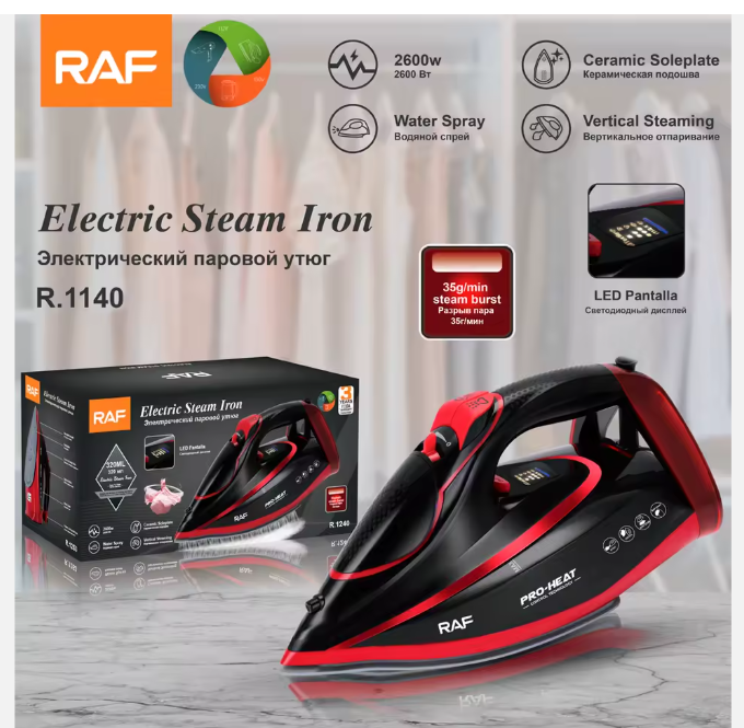RAF R.1140 Electric Steam Iron Ceramic Sole Steam Iron 2600 W Power