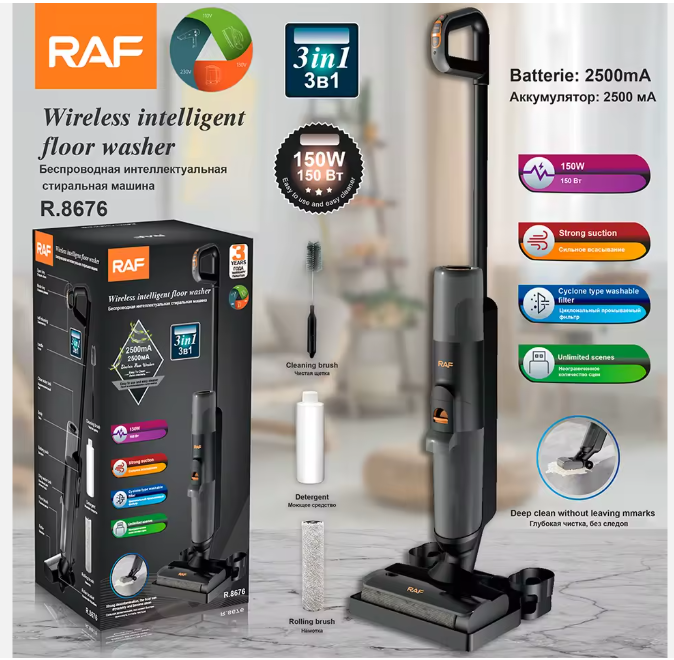 3-in-1 Cleaning System: Vacuum, wash, and dry floors in a single pass without switching tools — ideal for tiles, hardwood, marble, laminate, and more.