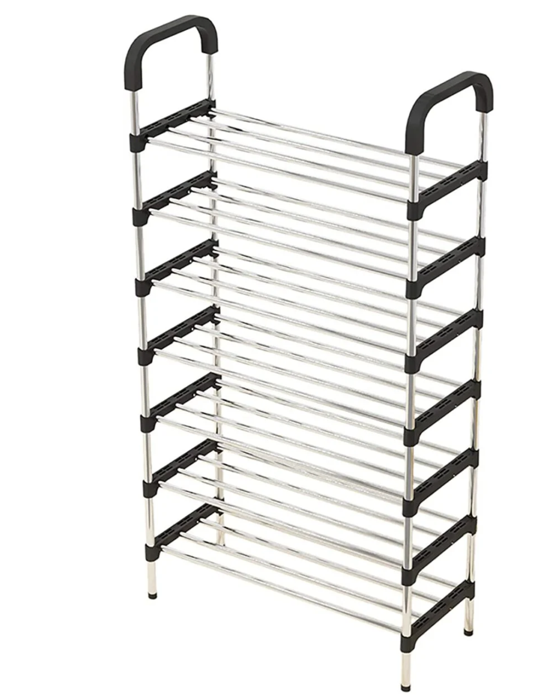 The shoe rack is portable, light in weight, and small in footprint. It can be used in different places such as homes, garages, etc. Each layer consists of 4 steel tubes, which are easy to assemble and disassemble and is very convenient.