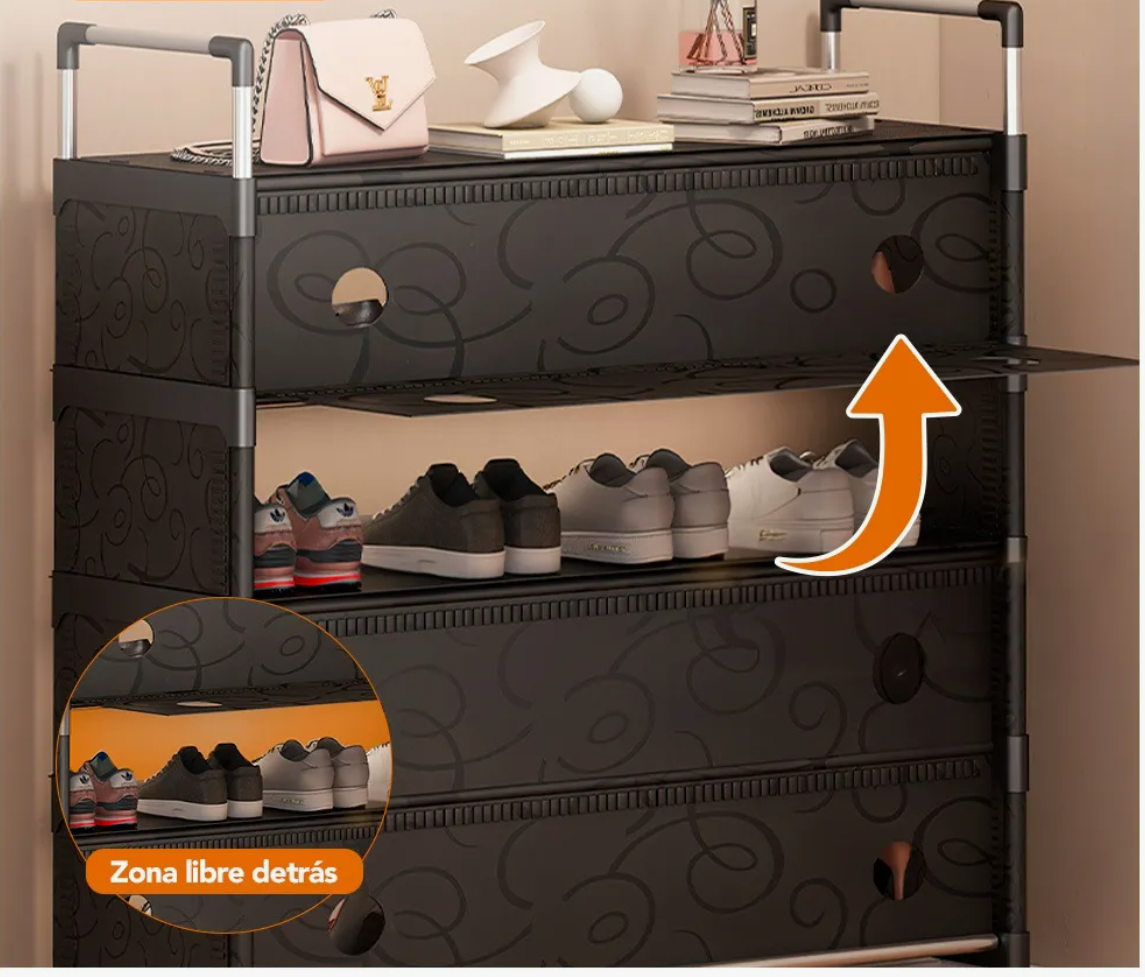 Keep your shoes organized and your space spotless with our 6-Tier Detachable Shoe Rack. This practical and modern organizer offers a versatile solution for storing your shoes, protecting them from dust and optimizing every corner of your home. Its hinged design and sturdy construction make it an essential piece of furniture for any entryway or bedroom. Hinged Design for Easy Access: Each tier features a hinged door for easy access to your shoes. This system also helps keep dust out and shoes out of sight, contributing to a tidier environment. The open back allows for ventilation. Removable Panels: The internal divider panels are removable, allowing you to adjust the height of the compartments and store all types of footwear, from sneakers to boots or high heels. Maximize Space: Its design maximizes the use of vertical space. The top surface is ideal for placing items, while the raised base allows for easy cleaning underneath. Multipurpose Organizer: Although it's a shoe rack, its versatile design allows you to use it to organize other items in different areas of your home. Easy to Assemble: Its simple structure and intuitive assembly system allow for quick and easy setup. Specifications: -Material: Metal + PP -Size: 138 x 28 x 63 cm (Measurements have a margin of +/- 3 cm) -Warranty: 1 month for factory defects (Does not apply to misuse of the product) ------------REFERENCE IMAGES-----------------