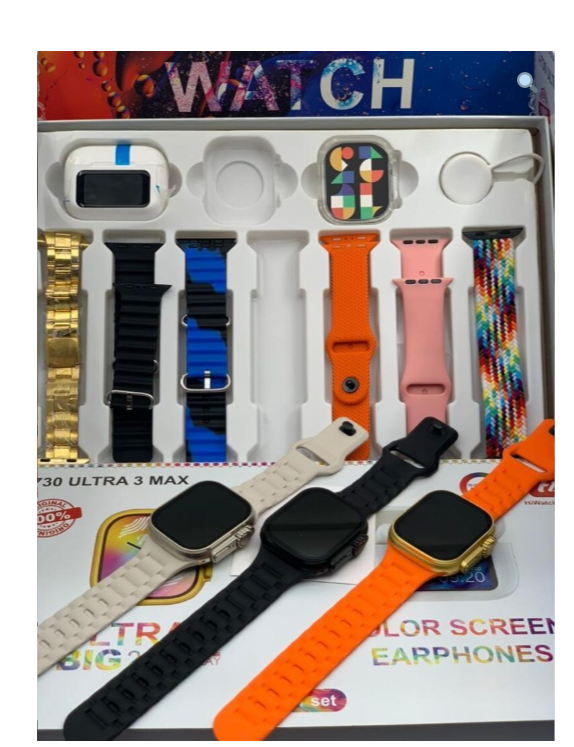 Ultra Max Smart Watch Ultra 10 In 1 Waterproof 7 Straps +Protective case+Earphones Men Women 49MM Bluetooth Call Heart Rate Wireless Charging Fitness Bracelet Smartwatch Set True Screw, True Buckle